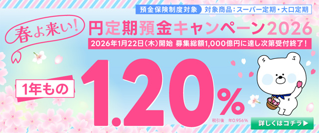 | 1年 | 0.40% ※1.20(キャンペーン実施中!) |