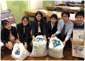 「地球に愛を子供に愛を」をテーマに収集したキャップを「NPO法人エコキャップ推進協会」に送付し、発展途上国へのワクチンを送る支援活動に協力した。