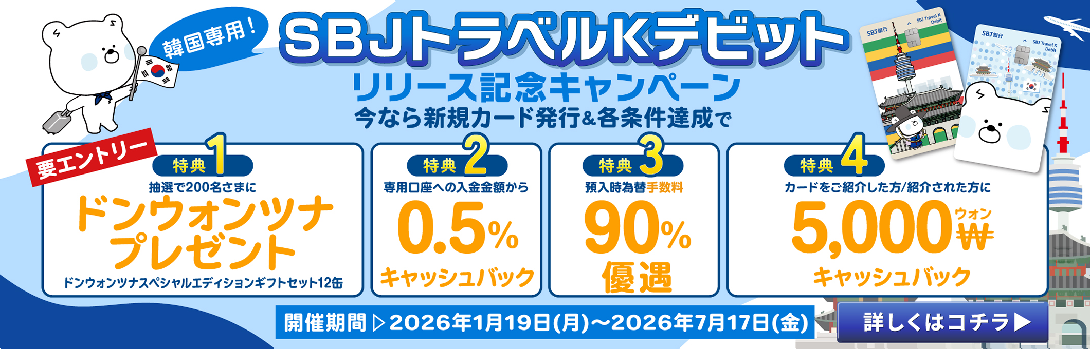 | ATM | 韓国ATM ウォン出金手数料 | 無料 (年2回まで、以降4,900ウォン/回) |